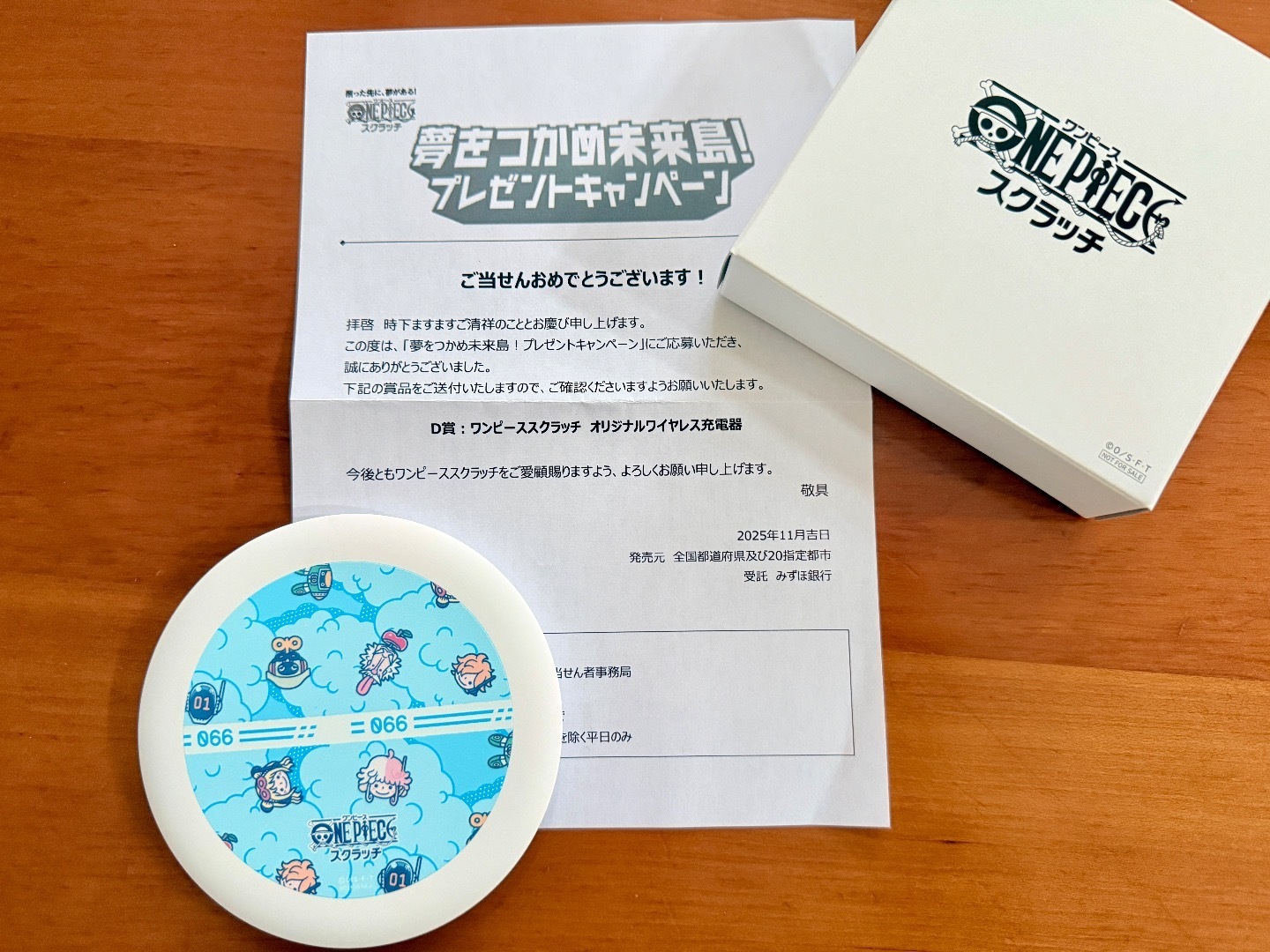 ワンピーススクラッチで当たった充電器が届きました、幸福です。