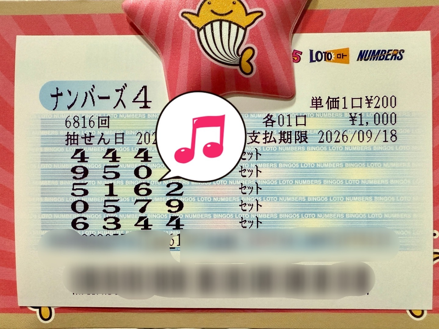 4カ月ぶりにナンバーズ4セット・ボックス当たりました、幸福です。